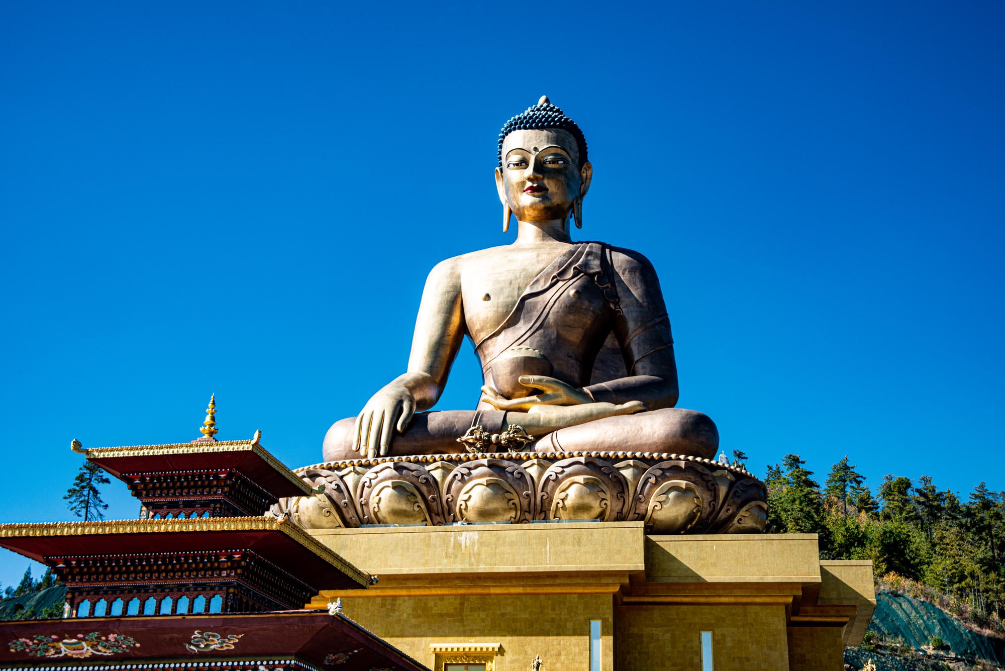 • The towering Buddha Dordenma statue overlooking the valley.
